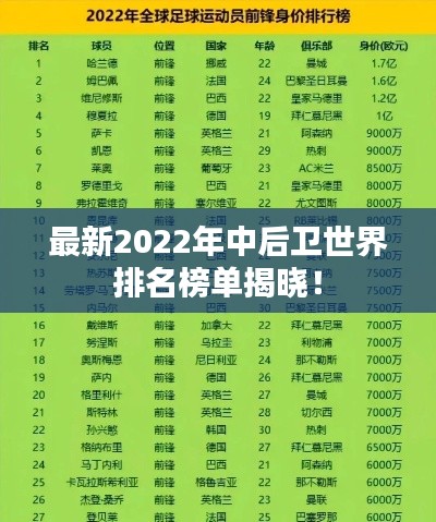 便是2022年中后卫排名的情况,这些球员在球场上的表现令人瞩目,他们的实力和天赋使他们成为了各自球队的重要成员,随着足球比赛的发展,这些球员将继续努力提高自己的水平并为球迷们带来更多精彩的比赛。