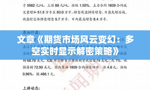 文章标题:《期货市场风云变幻:多空实时显示解密策略》