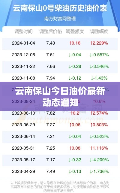 随着全球经济的波动和原油市场的变化,油价再次成为人们关注的焦点,作为云南省的一个重要城市,保山的油价变化也备受市民关注,本文将为大家带来云南保山最新今日油价的相关信息。