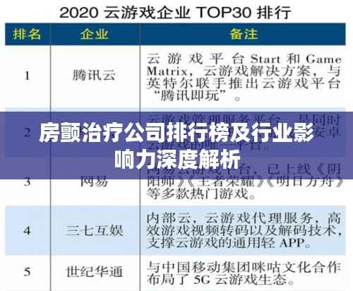 房颤是一种常见的心血管疾病,其治疗需求日益增长,随着医疗技术的不断进步,许多公司在房颤治疗领域取得了显著成果,本文将探讨房颤治疗公司的排名及其行业影响力,为读者提供全面的行业视角。
