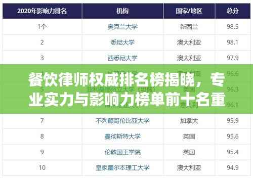 随着餐饮行业的迅速发展,与之相关的法律事务也日趋复杂,在这个背景下,餐饮律师的角色愈发重要,本文将为您介绍餐饮律师排名前十名,这些律师在业界具有广泛的影响力,以其专业实力和优质服务赢得了良好的口碑。