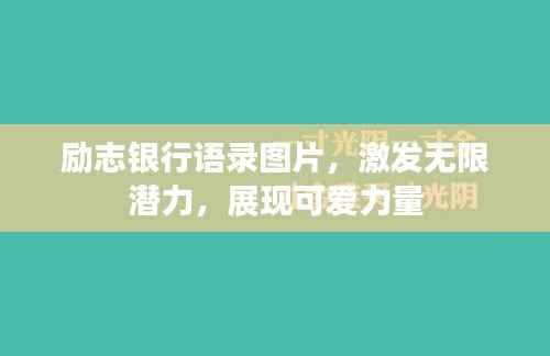 在这个充满挑战与机遇的时代,我们每一个人都在追求梦想的路上不断前行,银行励志语录图片,以其独特的可爱风格,为我们带来了正能量和动力,激发我们的潜力,让我们在人生的道路上更加坚定自信。