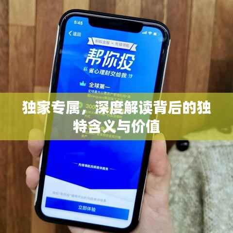 在现今社会,随着人们生活水平的提高和个性化需求的日益增长,越来越多的词汇开始涌现,“独家专属”便是近年来备受关注的一个词汇。“独家专属”究竟是何意思?本文将为您深入解析这一词汇的含义、应用及其重要性。