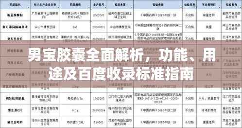 通过百度搜索“男宝胶囊”,我们得到大量的相关信息,涉及到男宝胶囊的功效、作用、使用方法等,值得注意的是,男宝胶囊是一种药物,因此在使用前请务必咨询专业医生或药师的建议。