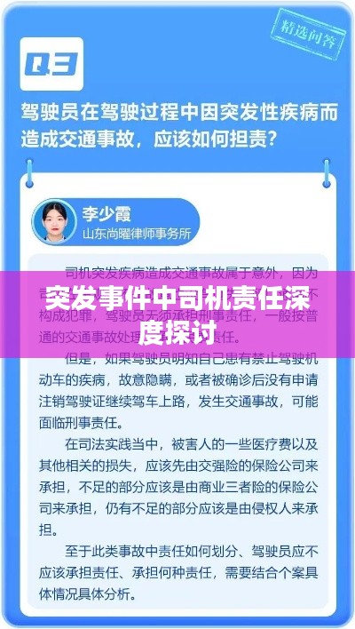 随着社会的快速发展,各类突发事件频繁发生,其中涉及到交通领域的突发事件更是引起了广泛关注,在突发事件中,司机作为交通活动的主要参与者,其责任问题尤为重要,本文旨在探讨在突发事件中,司机应承担的责任及其相关问题。