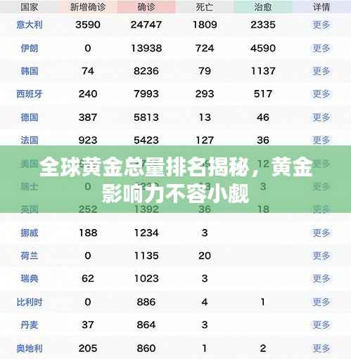 黄金,作为一种珍贵的金属,一直以来都是全球经济的核心要素之一,它不仅在金融领域占据重要地位,还在珠宝制造、科技和工业领域发挥着重要作用,本文将根据世界黄金总量排名,探讨各国黄金储备的状况及其影响力。