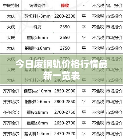 随着全球经济的不断发展和基础设施建设的持续推进,废钢轨市场也呈现出活跃的态势,本文将为您呈现今日废钢轨价格的最新情况,带您了解市场动态及相关因素。