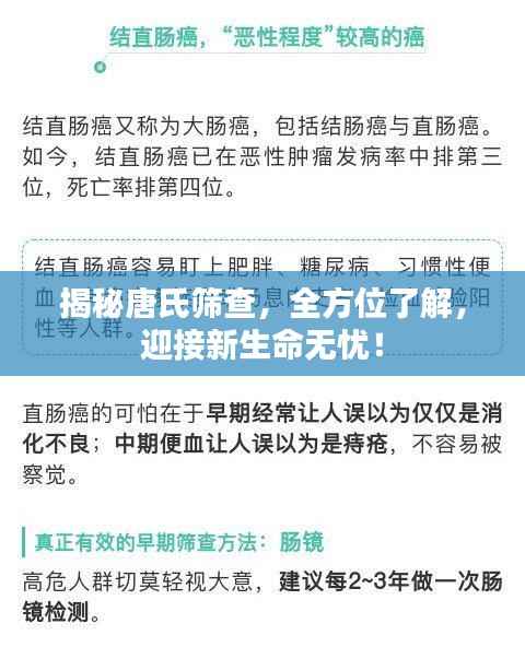 新生命的到来总是令人充满期待和喜悦,随着医疗科技的进步,孕期检查成为了确保母婴健康的重要环节,在这其中,"唐氏筛查"作为一个关键词,备受准妈妈们关注,究竟什么是唐氏筛查?就让我们一起跟随百度,深入了解唐氏筛查的奥秘。