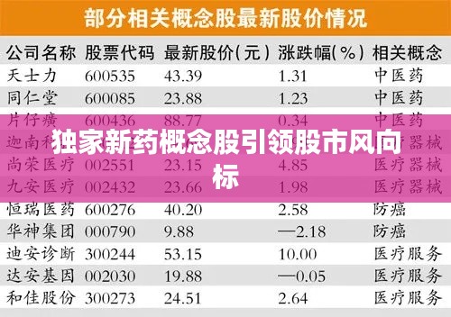 在医药行业的繁荣发展中,一种新型概念逐渐崭露头角——独家新药概念股,这类概念股的出现,不仅给医药市场带来新的活力,更在股市中掀起一股热潮,本文将深入探讨独家新药概念股的内涵、影响以及未来发展趋势。