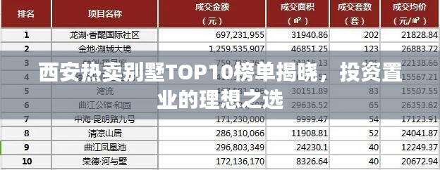 随着经济的发展和城市化进程的加快,西安房地产市场日益繁荣,别墅市场亦是如此,本文将为您介绍西安当前热卖别墅排名前十名,为您的投资置业提供有力的参考。